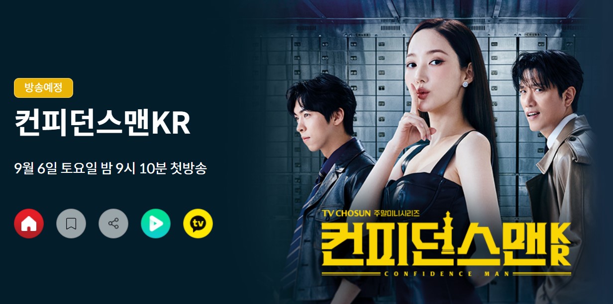 TV 조선 새 주말 드라마 <컨피던스 맨 KR>이 방영을 앞두고 있습니다. 25년 9월 6일 토요일 첫 방송되며, OTT 플랫폼은 쿠팡플레입니다. 총 12부작으로 박민영, 박희순, 주종혁 배우가 출연합니다. 서로 다른 매력을 지닌 신용 사기꾼 세 명이 기상천외한 방법으로 돈과 욕망에 사로잡힌 사람들에게 돈을 탈취하는 과정을 그린 드라마로, 컨피던스 맨 JP라는 일본 드라마를 원작으로 하는 작품입니다. 컨피던스 맨의 뜻은 confidence man으로 신뢰를 얻어 상대를 속이는 사기꾼을 뜻한다고 합니다. 드라마의 원작과 한국판 리메이크의 출연진에 대해 알아보겠습니다.